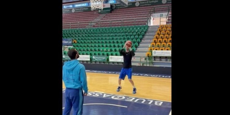 Polonara, que ha jugado en equipos como Baskonia y Virtus Bolonia, compartió un momento de su entrenamiento en las redes sociales, en el estadio de Sassari, junto a uno de los entrenadores del club.