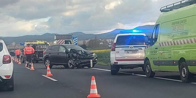 Esta tarde, alrededor de las 18:40, una furgoneta y un vehículo han colisionado en la N-622 de Vitoria-Gasteiz, en dirección a Burgos. Los servicios de emergencia, los bomberos de Vitoria y ambulancias, han llegado al lugar y han tenido que detener al conductor para que recibiera tratamiento.