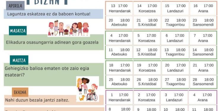 Las charlas se llevarán a cabo en abril, mayo y junio en varios centros Bizan, y la entrada será libre, hasta completar aforo. Según ha explicado el concejal de Políticas Sociales, Lucho Royero, cada sesión tendrá una duración de 45 minutos y se realizarán en horario de tarde, a las 17:00 y a las 18:00 horas.