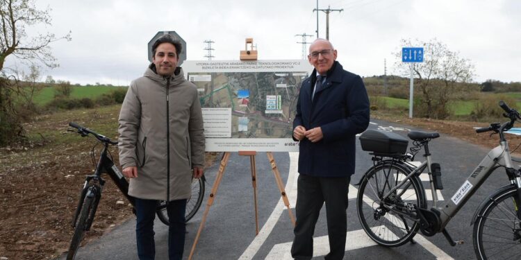 Ramiro González, diputado general de Álava, y Jon Nogales, diputado foral de Movilidad Sostenible y Obras Públicas, han destacado el valor de la vía, que, según su opinión, permitirá a los trabajadores desplazarse al trabajo de forma segura.