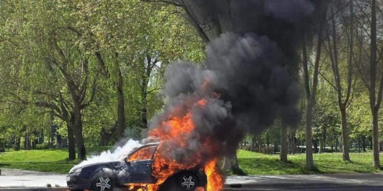 Gasteizen auto bat su hartzen, ke-zutabe handi bat sortuz